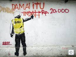 pergi mengikuti pak polisi dan ingin mengajukan jalan damai (bayar pake uang